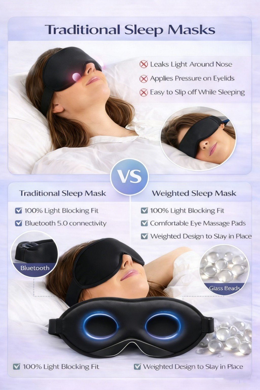 1.Perfect Weight for Sleep Faster & Deeper Slightly weighted (with 4.2 oz beads, right amount for eyes around) provides just enough pressure to relax your nerves or fatigue from your eyes, leading you to maximum relaxation and better sleep