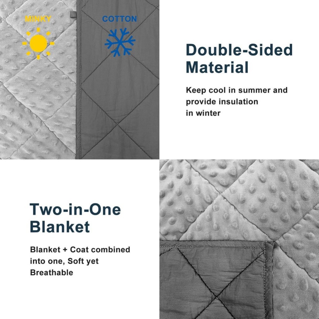 2.Weighted kids blanket is made of cotton fabric, while the other is very soft, minky cuddle fabric for sensory input
