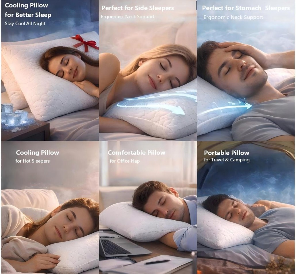 Night Sleep:Enjoy deep sleep all night with pillows that balance softness and neck alignment. Choose from memory foam, cooling gel, or adjustable fill to fit your unique sleeping style.