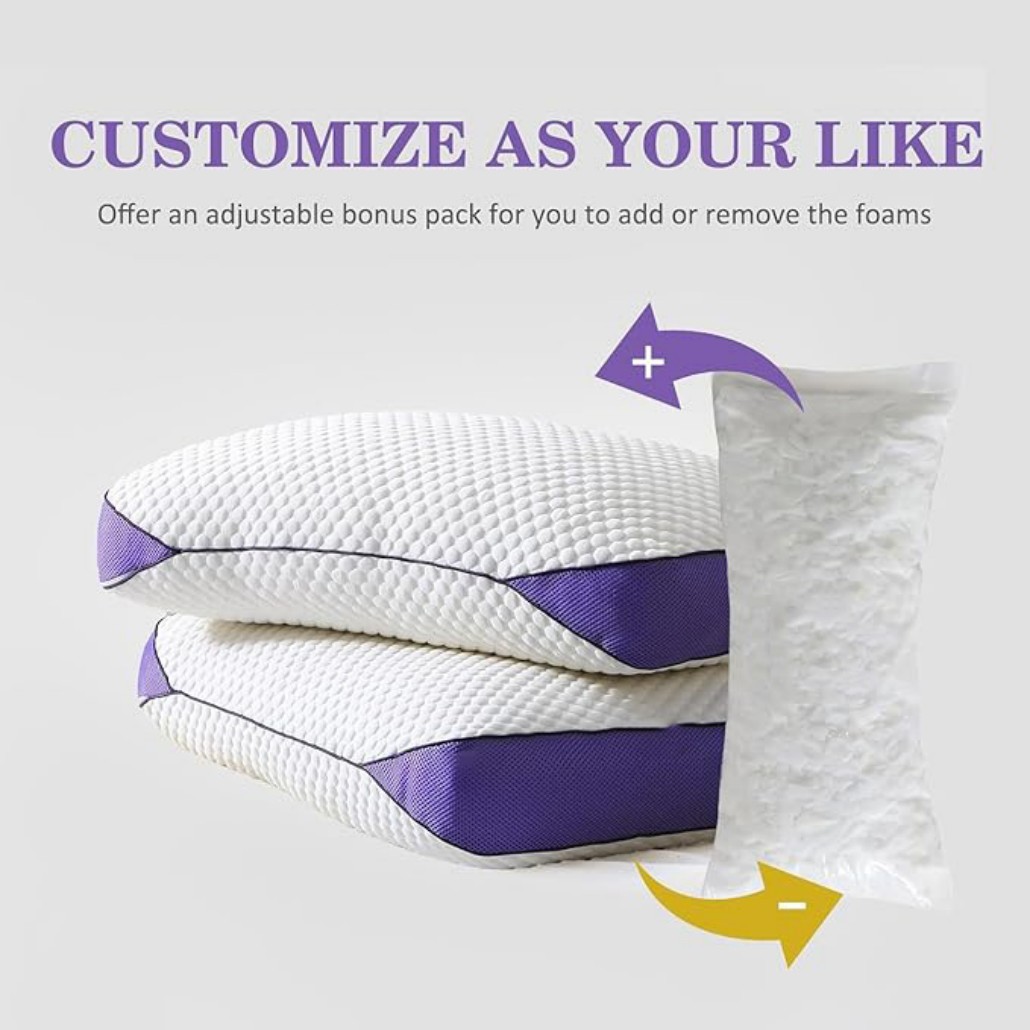 Adjustable Memory Foam Pillow for Side Back & Stomach Sleepers Cooling Pillow