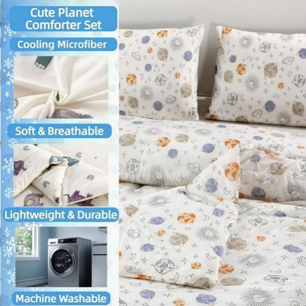3.3 Piece Set: The dinosaur cooling comforter set twin includes 1 comforter (69”*90”) + 2 pillowcases (20”*30”)