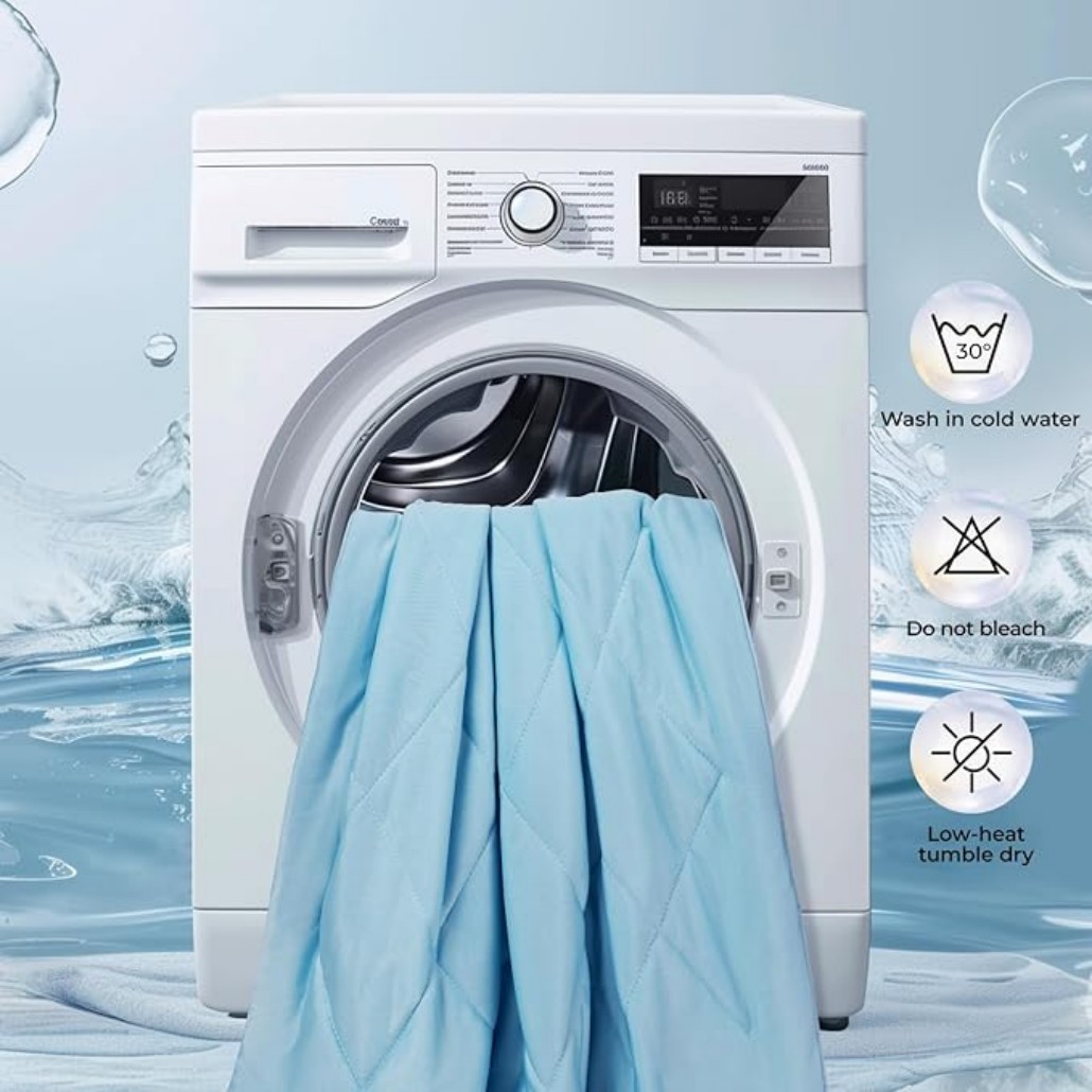 A: Yes, the blanket is machine washable and quick-drying. Gentle cycle with cold water is recommended.