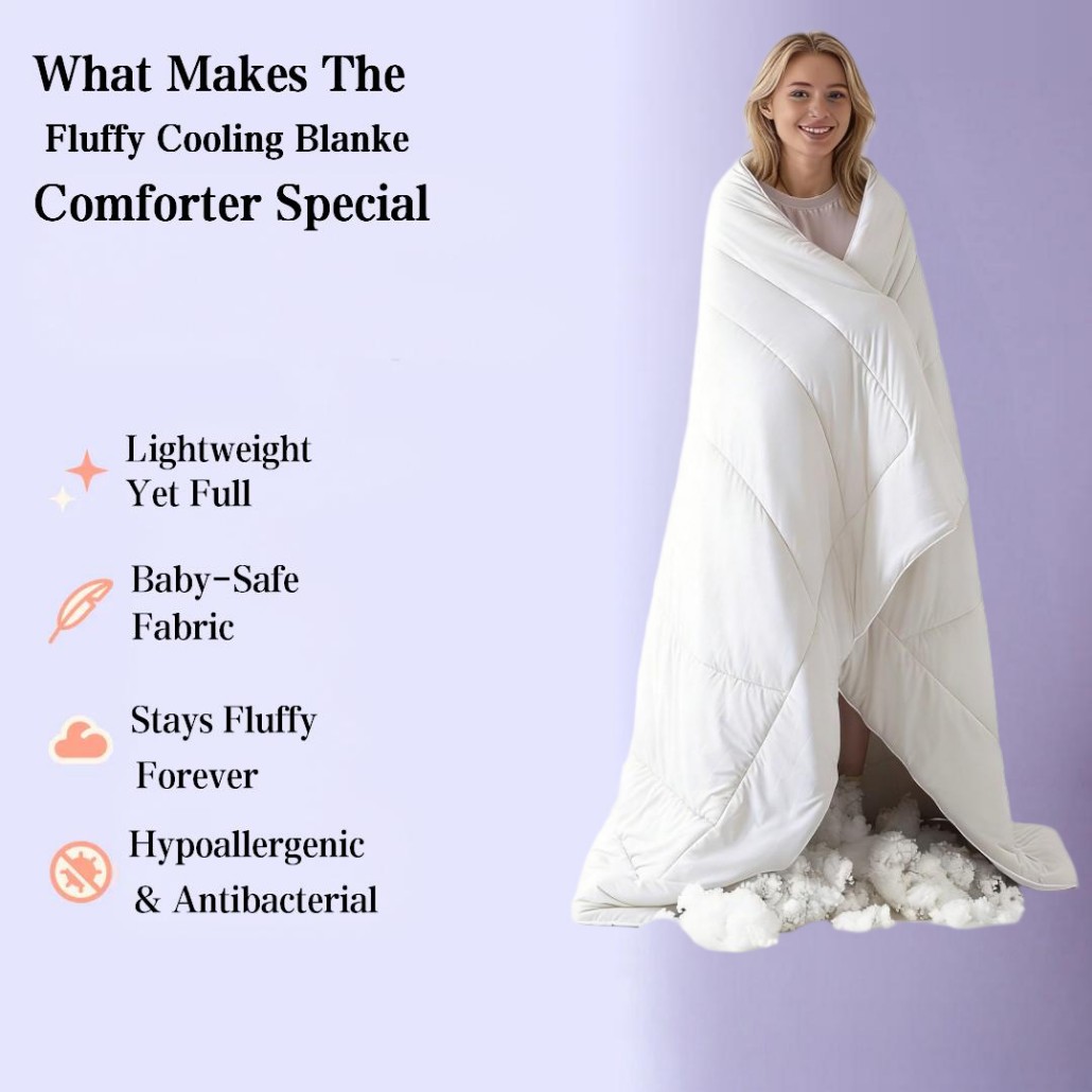 The 220 GSM fluffy construction provides a soft and airy feel without heavy pressure, making it perfect for summer and warm climates. Its sweat-wicking and skin-friendly materials help keep users dry and comfortable throughout the night.