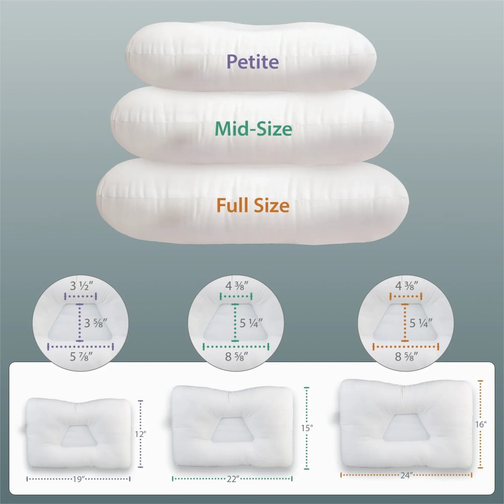 4.Accommodates Different Sized Sleepers: The FULL-SIZE pillow is recommended for adult sleepers who are around 5 feet 6 inches or taller; The MID-SIZE pillow is recommended for adults around 4 feet 10 inches to 5 feet 6 inches tall; The PETITE pillow is recommended for adults who are shorter than 4 feet 10 inches