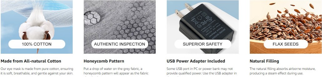 3.[Graphene Heating Technology]The Graphene Heating element can gernerate Far Infrared Radiation (FIR), which has a particulartly strong ablility to penertrate deeply into the body, similar to sunshine. Experience sun-like comfort with our heated eye mask.