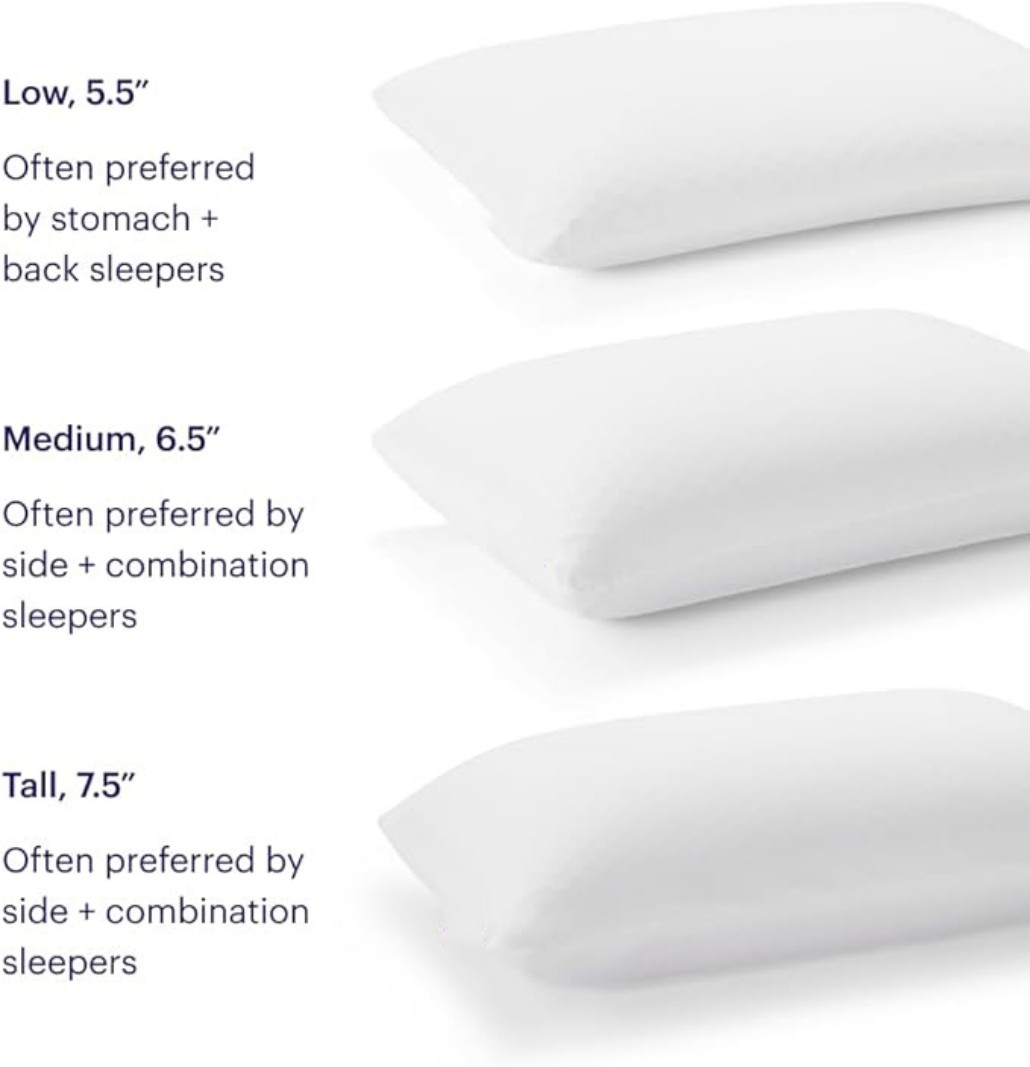 4.Available In Low, Medium + Tall Lofts: Low (5.5”) often preferred by stomach + back sleepers. Medium (6.5”) often preferred by side + combo sleepers. Tall (7.5”) often preferred by taller individuals and side + combo sleepers.