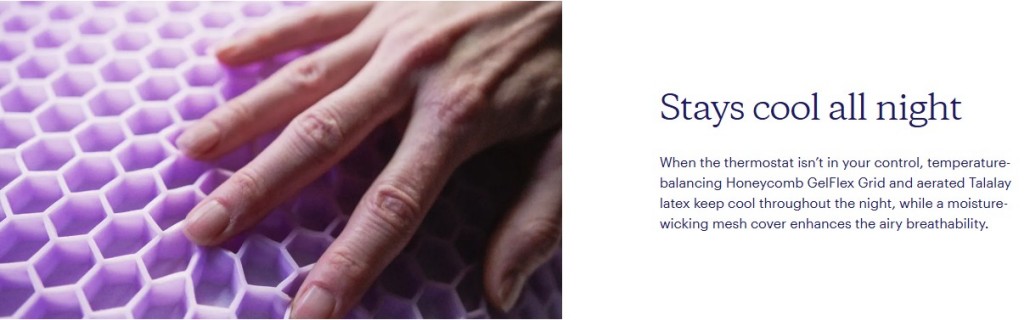 2.Stays Cool All Night: Patented GelFlex Grid, ventilated latex, and moisture-wicking mesh cover maximize airflow so you never sleep hot.