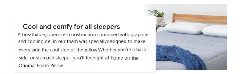 3.Cool Pillow: Unlike others who use shredded, recycled foam, the T&N pillow is made to sleep cool with infused graphite & cooling gel; never flip your bed pillows again