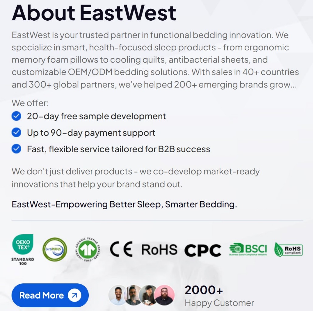 | Certifications | OEKO-TEX® STANDARD 100, CertiPUR-US®, GOTS, CE, RoHS, CPC, and BSCI. |