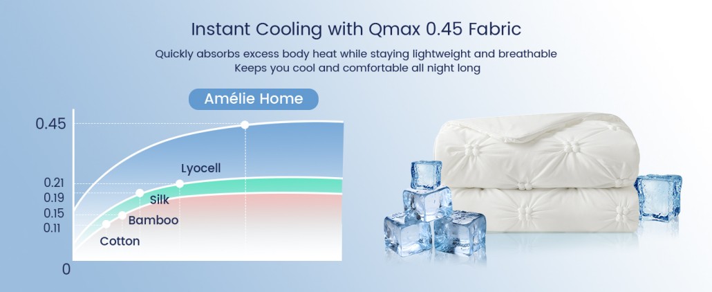 Designed with Qmax 0.45 cooling fabric, it instantly absorbs body heat on contact, creating a refreshing sleep experience ideal for warm nights. The innovative Y-shaped fiber enhances airflow and moisture wicking, helping regulate temperature and keep your sleep environment dry and breathable.