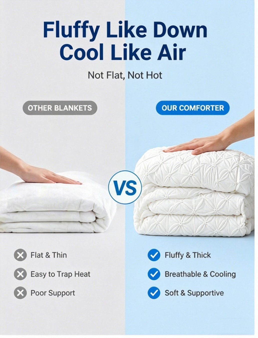 Unlike traditional thin cooling blankets, this comforter offers a plush, hotel-like feel while still maintaining excellent cooling performance.