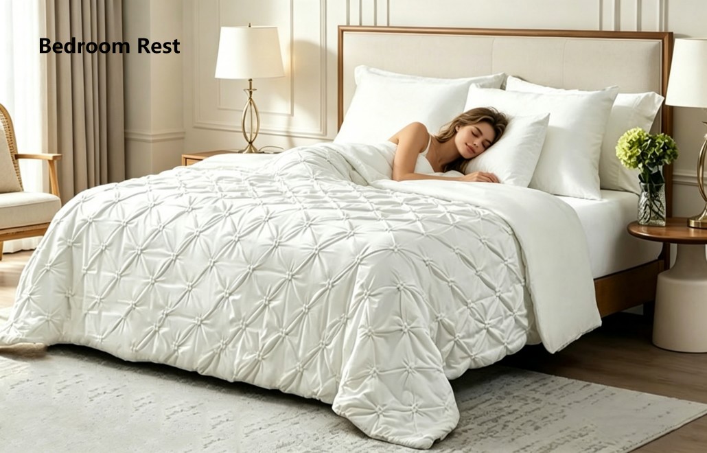 1.ELEGANT WHITE PINTUCK DESIGN WITH SILKY TOUCH:Classic white bedding enhanced with refined pintuck detailing creates a luxurious, hotel-inspired bedroom look. The silky cooling fabric feels exceptionally smooth and refreshing against the skin for elevated summer comfort.