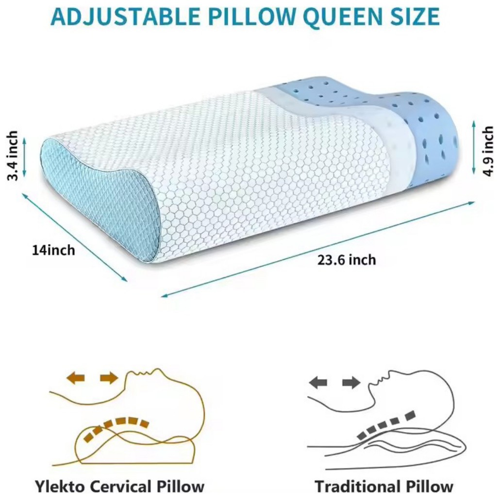 4.2 Available Heights for Any Sleep Style: The standard dimensions are 23.6 x 13.8 x 5.3/3.7 inches ( L x W x H) , with slight variations of 0.5 inch due to manual measurement. There are two available neck support heights to support your neck and head. The ergonomic and supportive pillow for neck pain is designed for multiple sleeping positions, such as side sleeping, supine, stomach sleeping, back sleeping and low pillow sleepers etc.