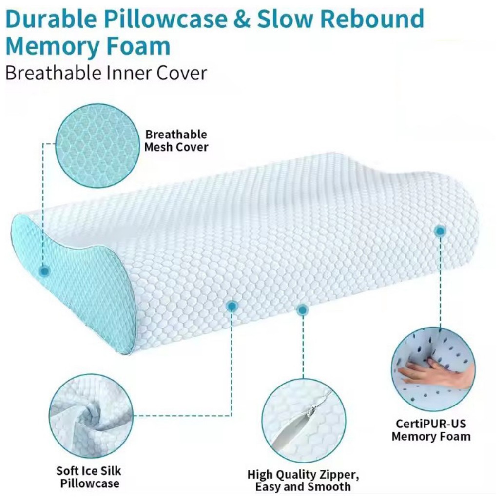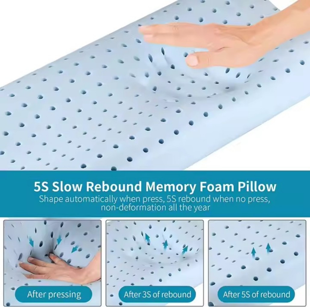 2.5S Slow Rebound Memory Foam Pillow: Neck pillow shapes automatically when firmly being pressed and will rebound within 5S when no press, non-deformation all the year. Lying on the bed pillow feels like floating on water or clouds, no pressure on the skin. With slow rebound design, the neck support pillow does NOT compress auricle like other common pillows