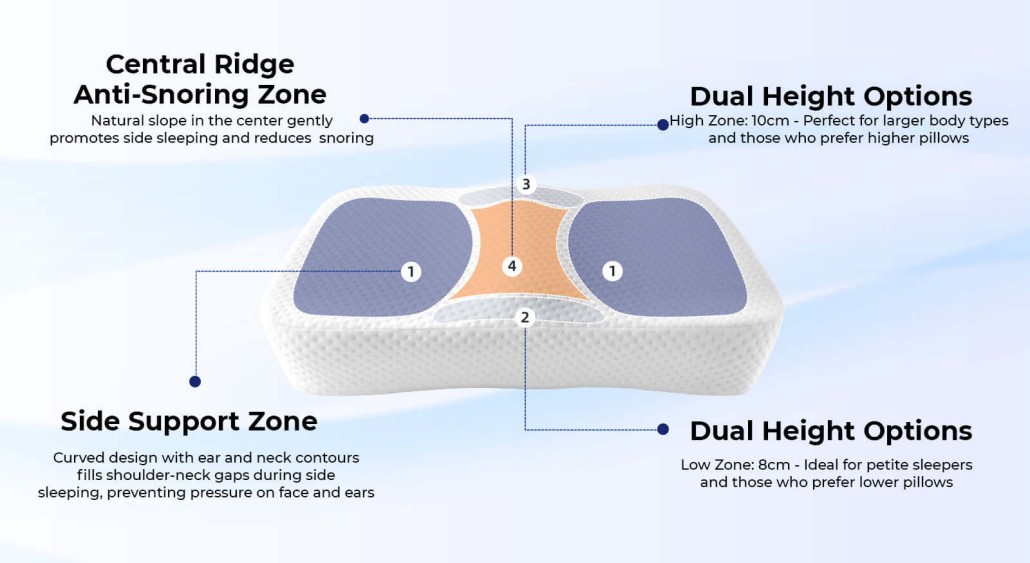 A: An anti-snore pillow is designed to support proper head, neck, and spine alignment, especially for side sleepers. It helps open up the airways, reducing snoring caused by airway obstruction.