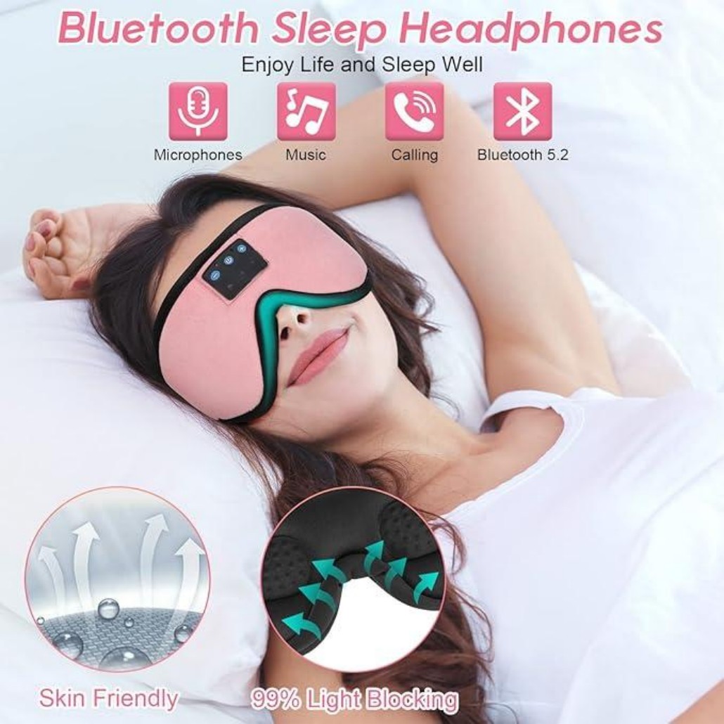 Cool Comfortable Fabric and Perfect Light Block, 3D Contoured Bluetooth Eye Mask, HD Stereo Sound and Long Battery Life, Sleep Mask with Bluetooth Headphones, Bluetooth 5.4 Wireless Connection Earphones