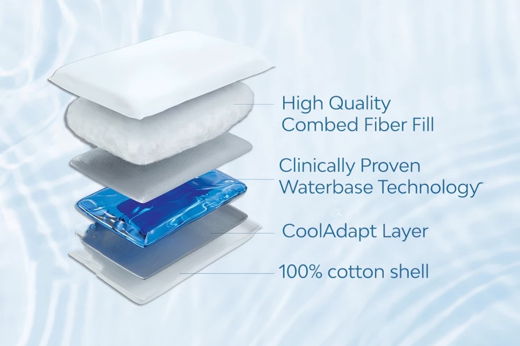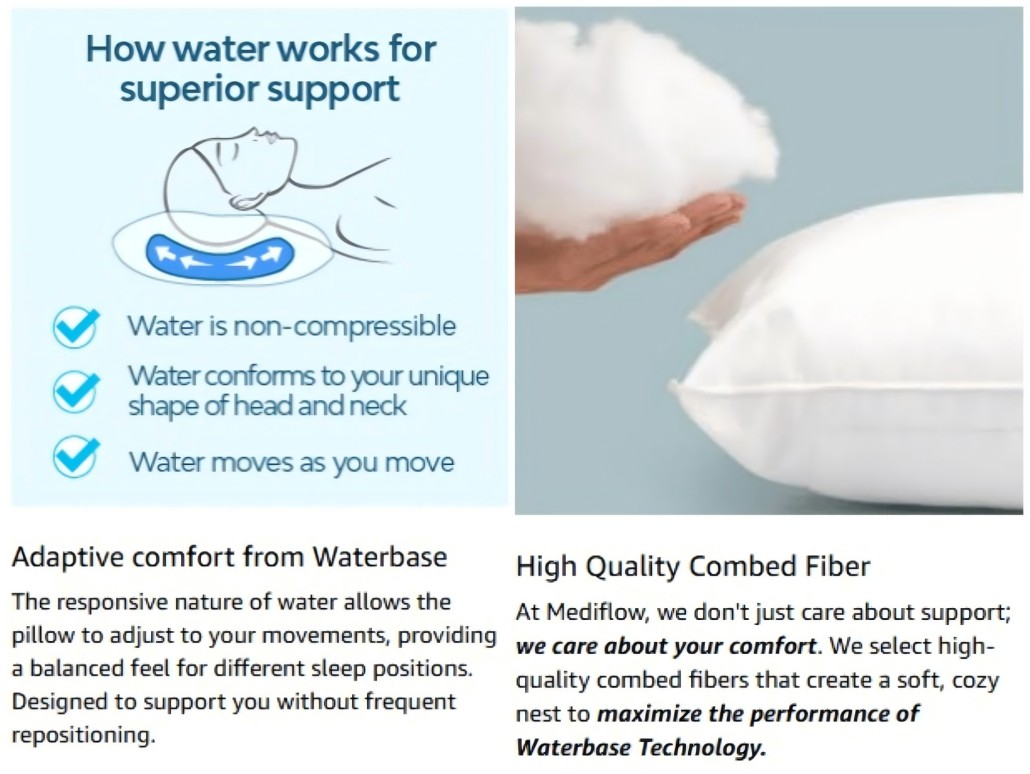 2.Fully Adjustable For All Sleeping Positions: adjustable pillow lets you control firmness and height for a personalized fit. The unique Waterbase design makes it the perfect bed pillow for side sleepers, back sleepers, and stomach sleepers.
