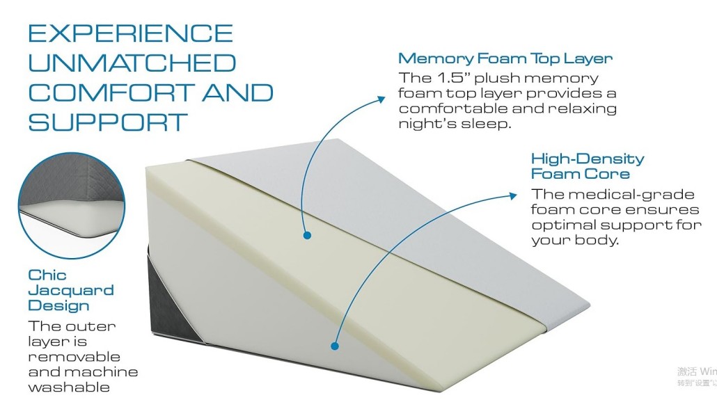 2.Luxurious And Stylish Jacquard Pillow Case: Hey it’s your bedroom, not a hospital room, give it some style。 Wedge features a classic yet contemporary design. The removable jacquard pillow case protects the incline pillow from stains while promoting a comfortable night’s sleep. Cover is machine washable and can be removed from the triangle pillow core.