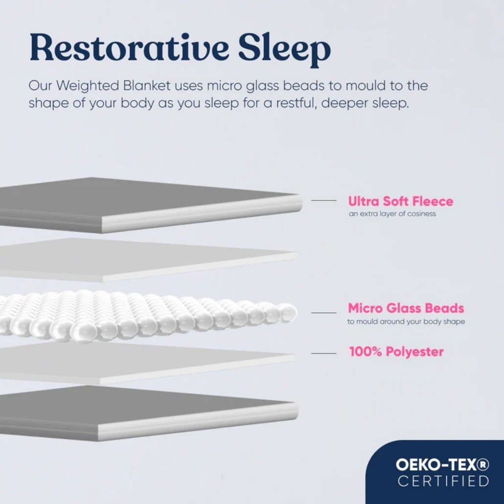 Experience a deeper, more restful sleep with our Weighted Blanket, designed to provide a sense of calm, comfort, and relaxation.