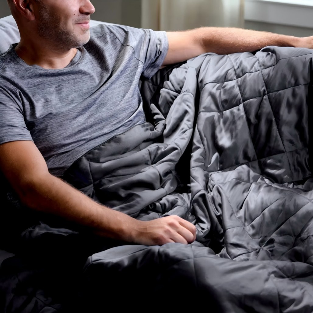 A: A weighted blanket is filled with evenly distributed materials (like glass beads) to provide gentle pressure across the body, promoting relaxation and deeper sleep. Regular quilts focus on warmth and comfort but do not offer this sensory effect.