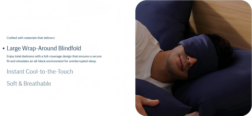 Enjoy uninterrupted rest with a wrap-around eye mask that’s soft, breathable, and refreshingly cool from the moment it touches your skin.