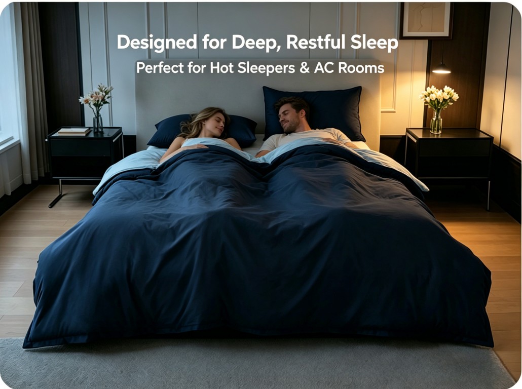 Lightweight yet cozy, it delivers the comfort of a thick comforter without the heaviness — making it perfect for hot sleepers, air-conditioned rooms, and year-round use.