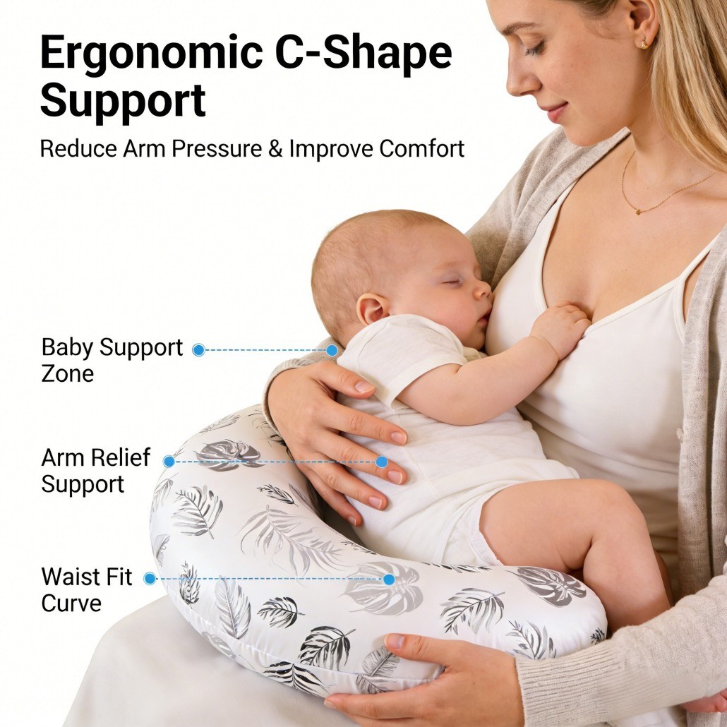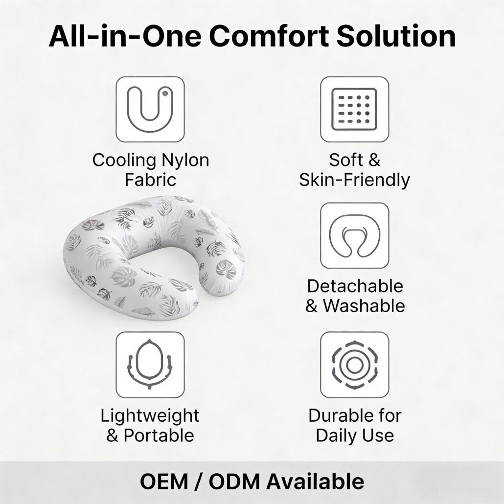 This nursing pillow is suitable for new moms, babies, and postpartum care, making it a practical and versatile solution for modern families. It also supports OEM customization, allowing for personalized colors, logos, and packaging. Whether used at home or as a thoughtful gift, this C-shaped cooling nursing pillow ensures a soothing, hygienic, and supportive experience for both mother and child.