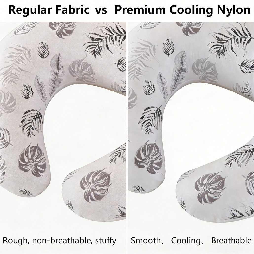 This C-shaped nursing pillow cover is designed to keep both moms and babies cool and comfortable during feeding or holding sessions. Made with premium breathable nylon fabric, it effectively reduces heat buildup, providing a soft and skin-friendly touch. The cover is fully detachable and easy to clean, ensuring hygiene and long-lasting use. Perfectly compatible with C-shaped nursing pillows, it offers a smooth surface for baby comfort while maintaining ergonomic support for mom. Lightweight, durable, and portable, this pillow cover is ideal for daily use at home, travel, or as a thoughtful gift.