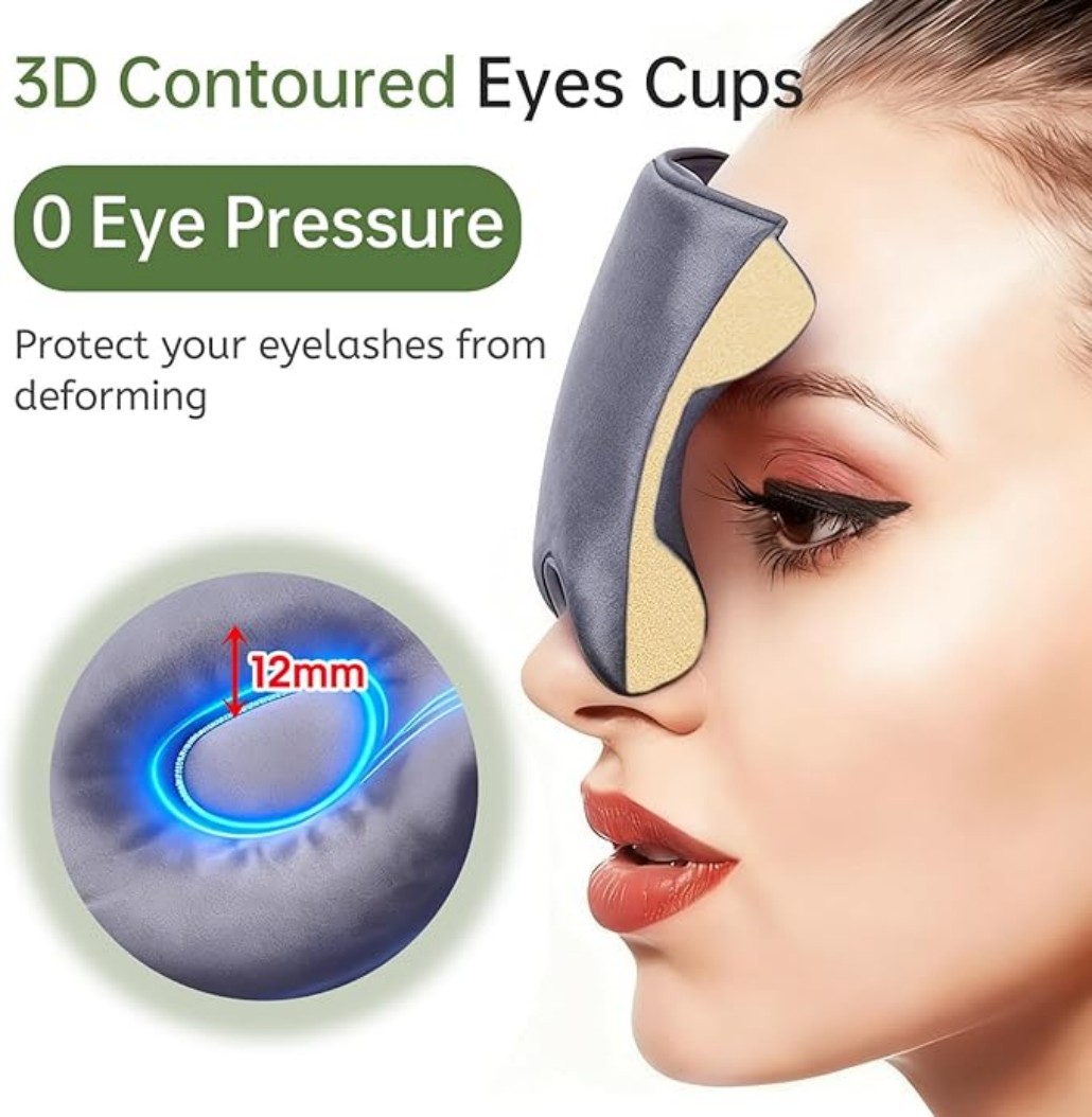 2.The 3D design offers zero eye pressure and is lash-friendly. It fits snugly around eyes without pressing eyeballs or eyelids, avoiding discomfort from traditional flat eye masks. Its soft material ensures comfort even for extended wear.