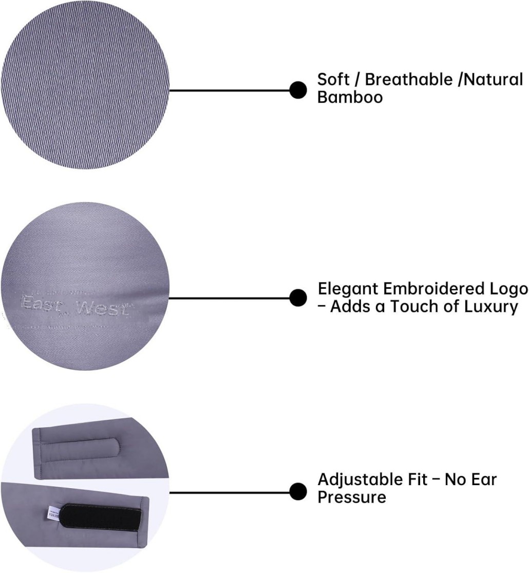 4.With an adjustable velcro strap, it fits all head sizes and stays put all night. The strap avoids pulling hair, eliminating constant readjustment—guaranteeing a peaceful sleep or restful nap every time.