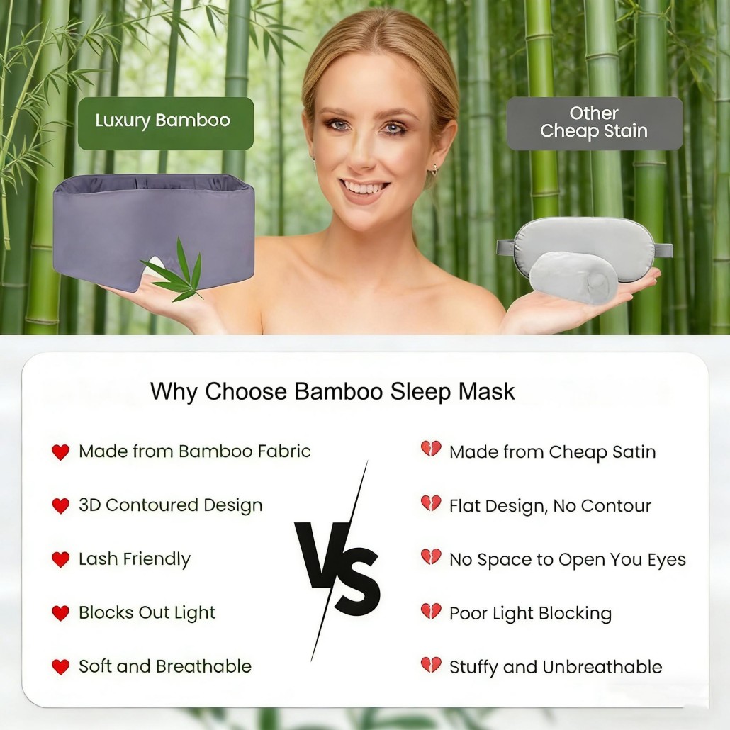 Bamboo 3D Blackout Sleep Mask for Side Sleepers – Zero Pressure Eye Mask for Travel & Airplane